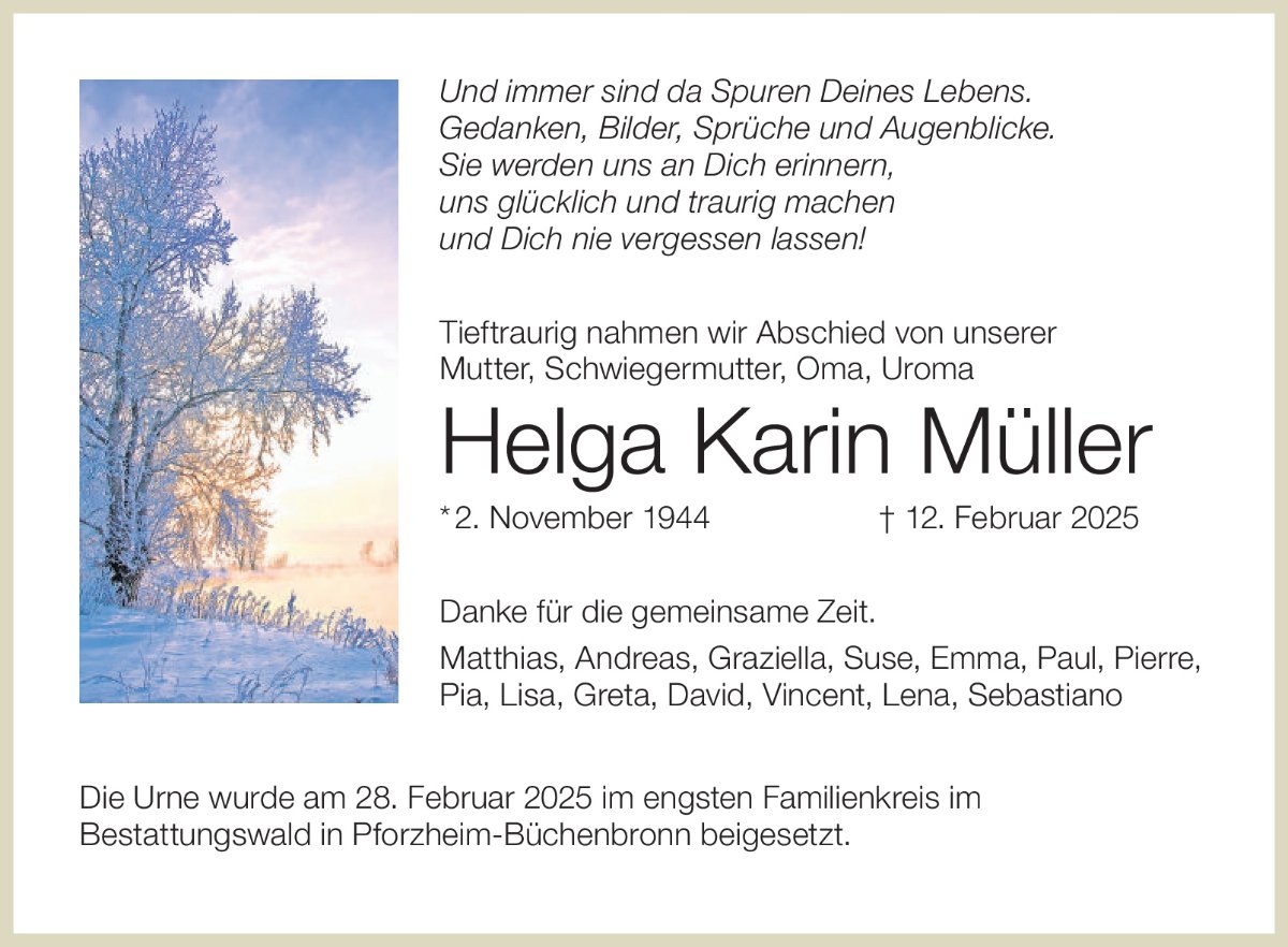 gestorben am 12. Februar 2025 in Niefern-Öschelbronn